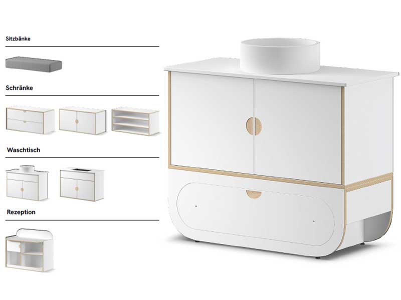 Indem du verschiedene Aufbewahrungsmodule oder Zubehör hinzufügst, kannst du das gesamte Mobiliar gestalten, das deine Praxis benötigt und sich optimal in den Raum einfügt.